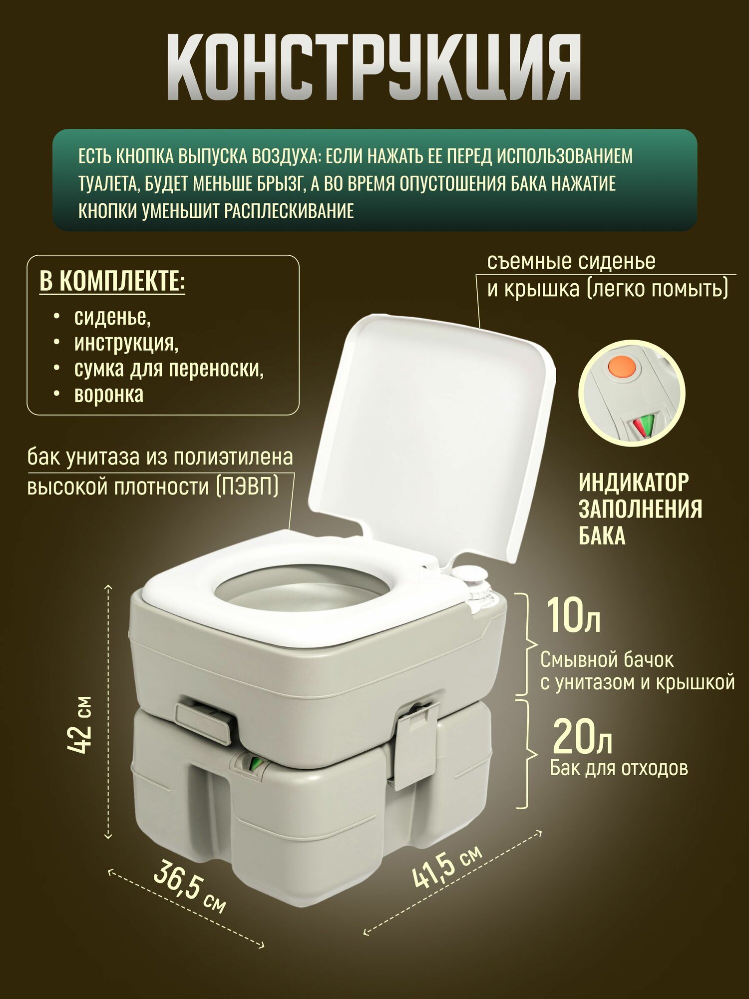 Портативный биотуалет Saniteco CHH-3320, 20 л информация: