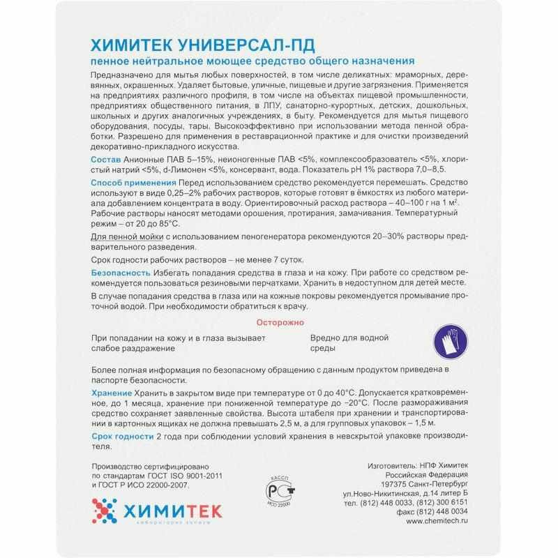 Универсальное моющее средство Химитек Универсал-ПД 1 л (концентрат) 236898 информация: