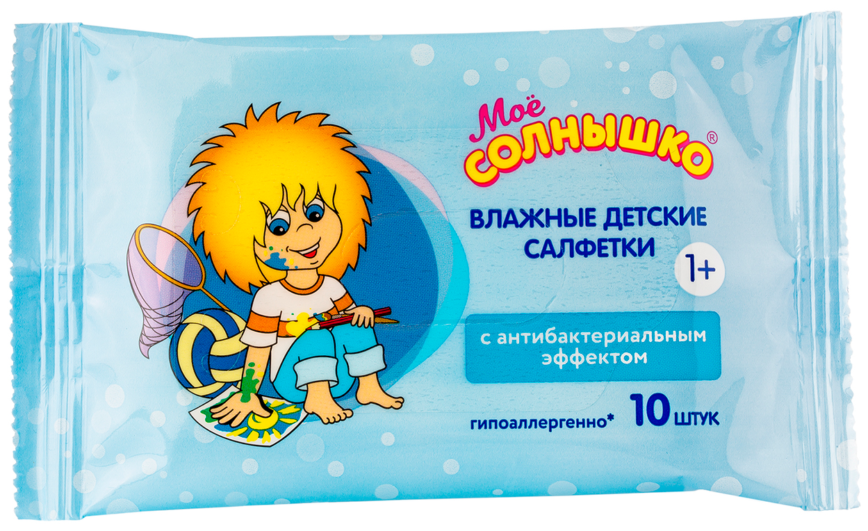 Салфетки влажные Мое солнышко 10 шт с антибактериальным эффектом - 1 штука информация: