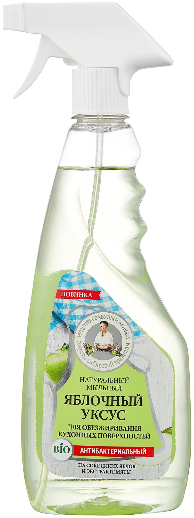 Рецепты бабушки Агафьи Уксус "Яблочный", мыльный, антибактериальный, для обезжиривания кухонных поверхностей 450мл