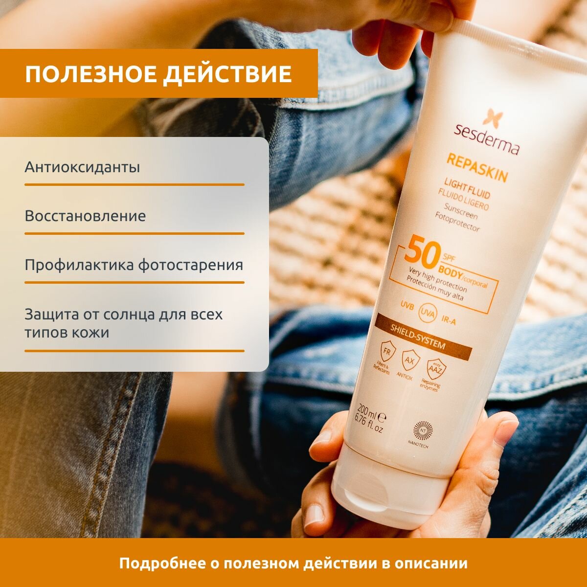 Флюид нежный солнцезащитный для тела Sesderma СЗФ 50, 200 мл, REPASKIN LIGHT FLUID Body sunscreen SPF50