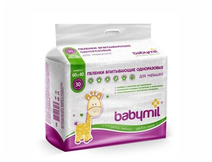 BabyMil Пеленки впитывающие одноразовые для малышей 60*40 см.(упаковка 30 штук)