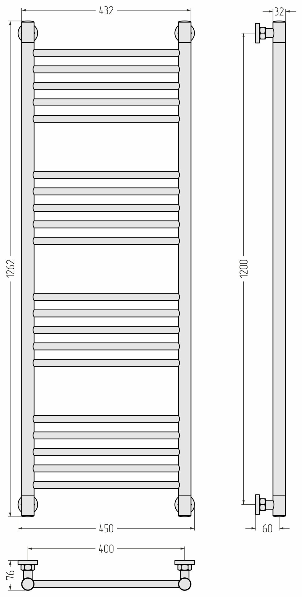 Полотенцесушитель водяной Сунержа, ДР “Богема“ прямая 1200х400 (Матовый Белый)