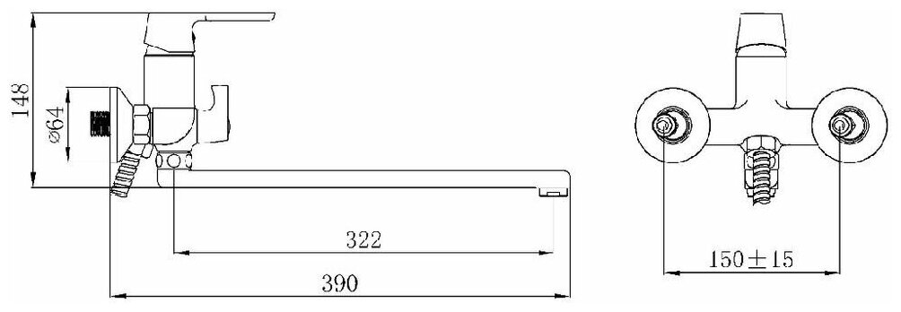 | Длина излива | 322 мм |