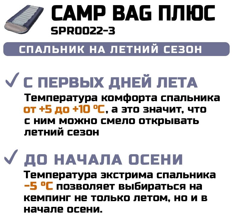 Отзывы на Спальный мешок одеяло Prival Camp bag плюс синий/серый, t extr -5 °С, 220х95, молния справа