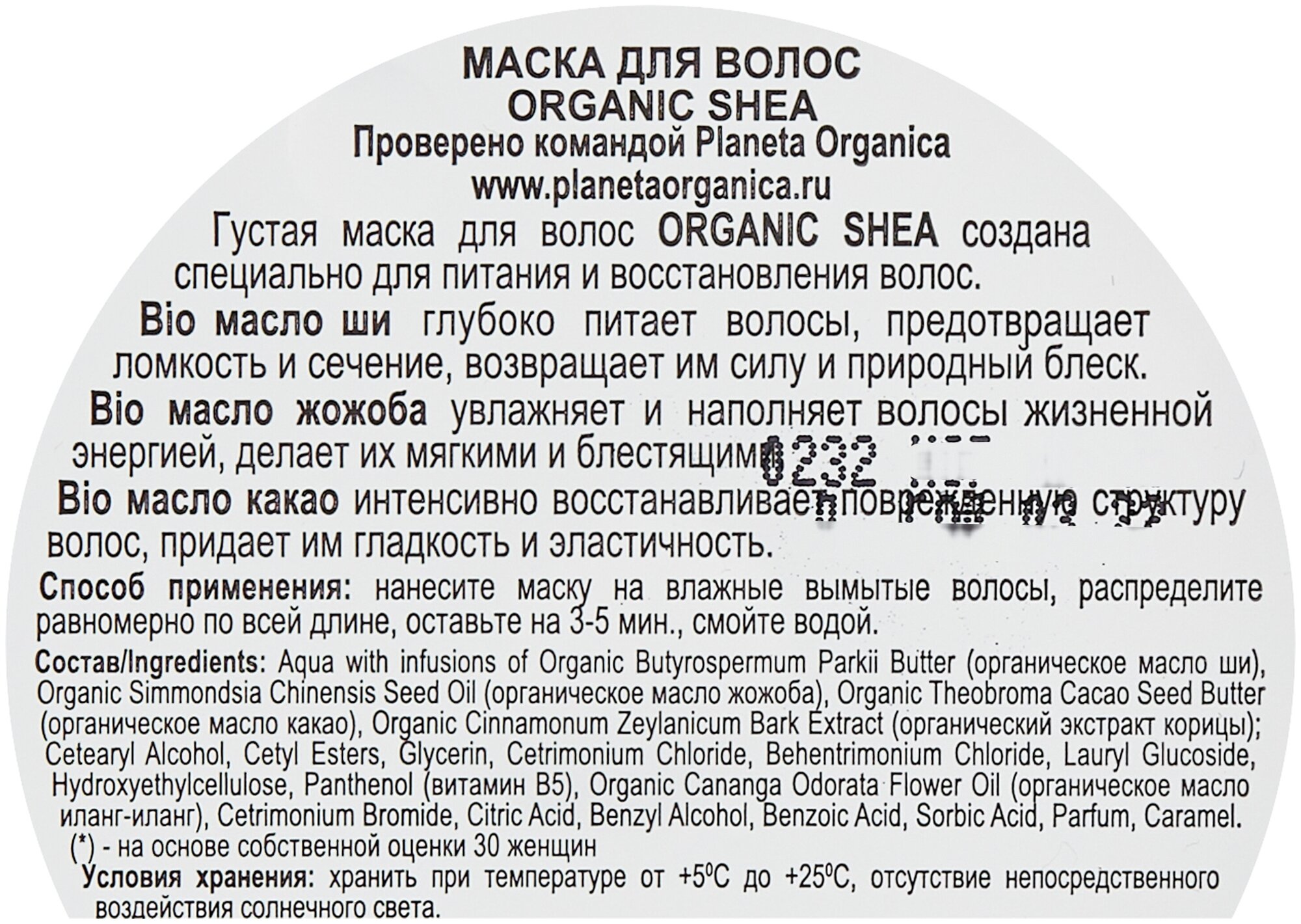 Planeta Organica Густая маска для волос, масло ши, 300 мл, Planeta Organica информация: