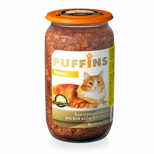 Консервы Puffins 650г для кошек Курица стекло (Упаковка 8 шт)