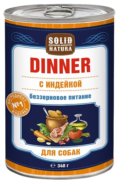 Корм для собак Solid Natura Dinner Консервированный Корм для собак Индейка 340 гр