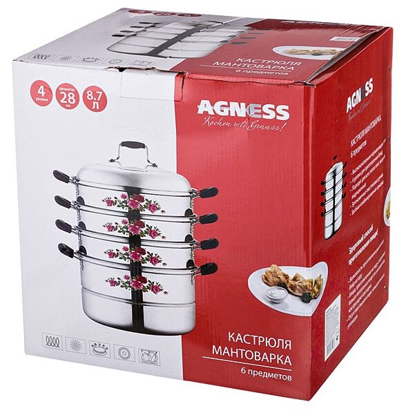 Кастрюля-мантоварка agness 3 уровня диаметр 28 см. 8,7 л. Индукционное дно информация: