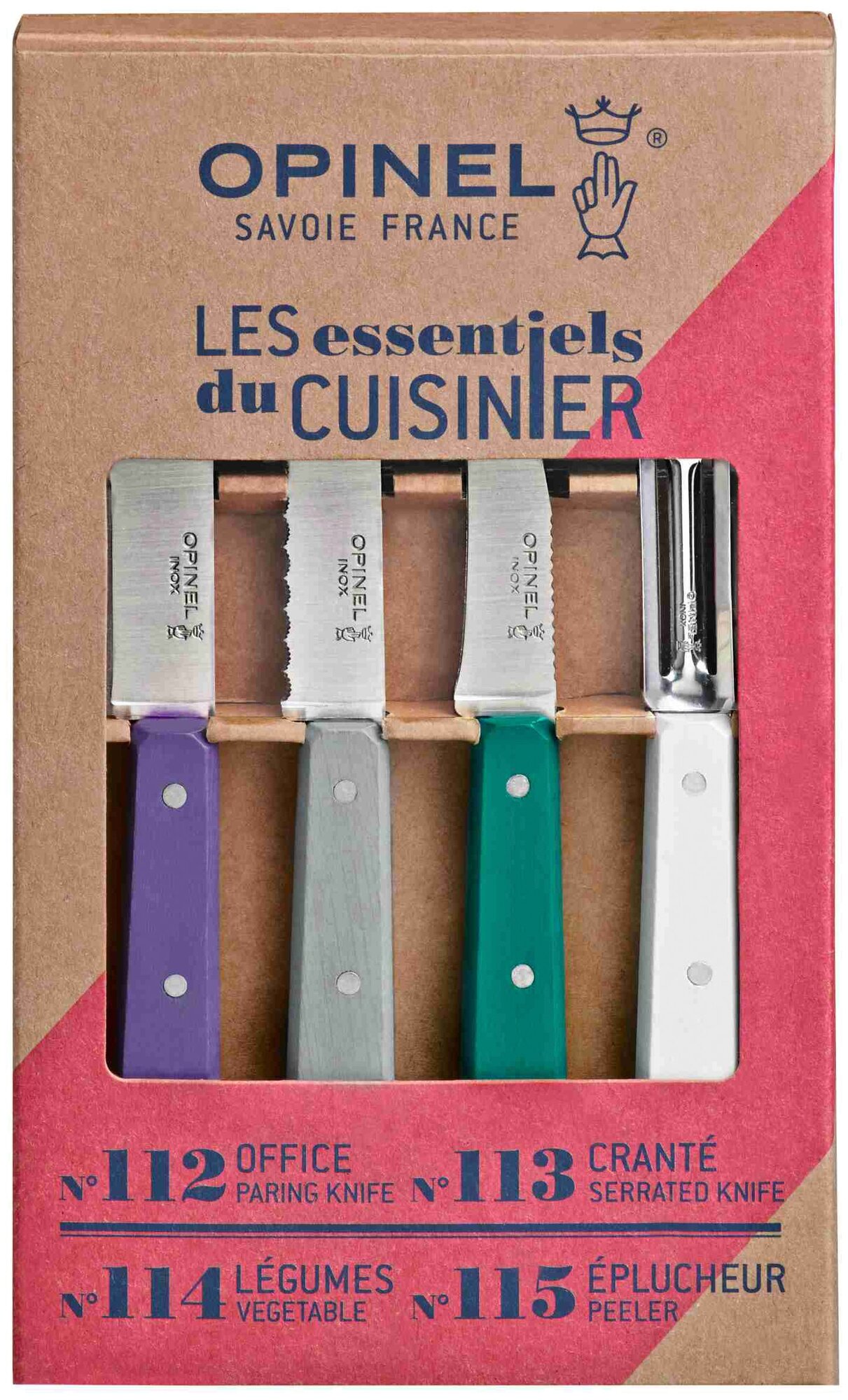 Набор ножей Opinel серии Les Essentiels №112/113/114/115 - 4шт., нержавеющая сталь, рукоять-бук, 4 цвета,