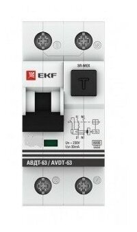 Дифференциальный автоматический выключатель EKF PROxima АВДТ-63 63А, С, 30мА, тип A, 6кА, электронный