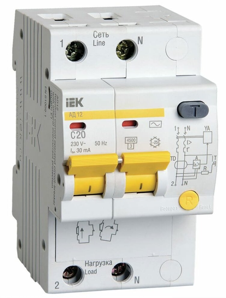 IEK Дифференциальный автоматический выключатель АД12 2Р 20А 30мА MAD10-2-020-C-030 информация: