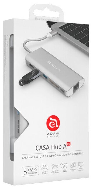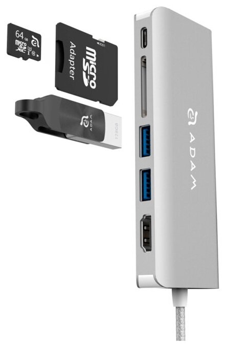 USB-хаб ADAM elements CASA Hub A01 6-in-1 серебро (AAPADHUBA01SL)