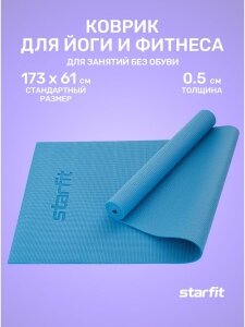 Коврик для йоги и фитнеса, STARFIT, FM-101 PVC, 0,5см, 173x61см, синий пастель