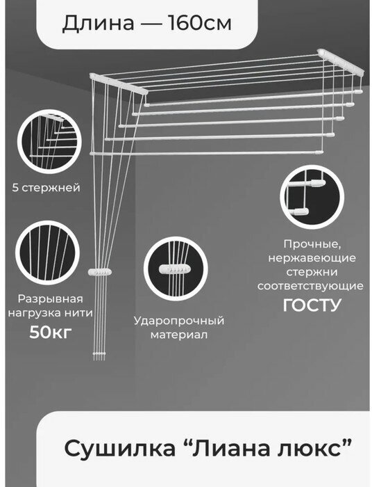 сушилка для белья LDN потолочная лиана Люкс 1,6м 5 стержней информация:
