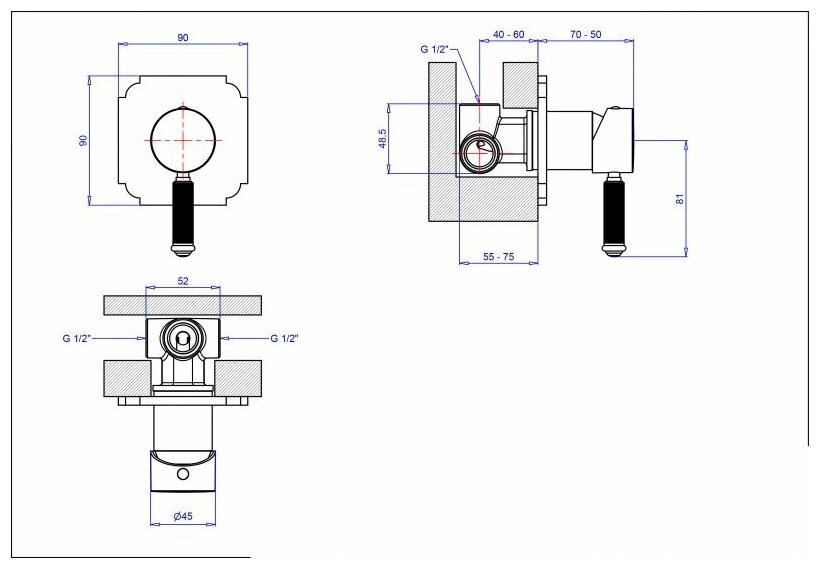 Cezares Встраиваемый смеситель для душа Cezares APHRODITE-DIM2-03/24-Bi