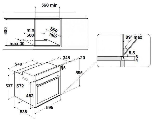 Духовой шкаф встраиваемый LEX EDM 077 C IV, 60 см, с конвекцией, механические ручки, объем 60 л, аналоговый таймер, телескопические направляющие.