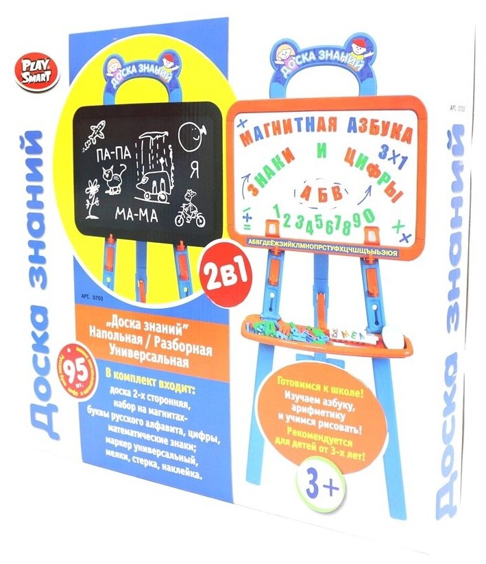 Магнитная доска и для доска для рисования "Доска знаний Play Smart" 0703, 2 в 1, напольная