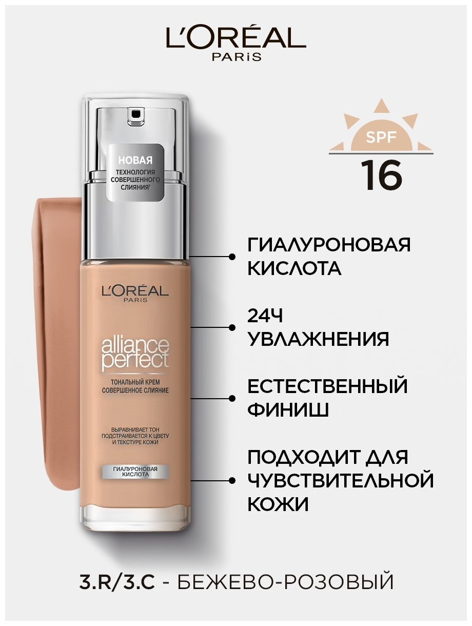 Отзывы на Тональный крем для лица L'Oreal Paris Alliance Perfect т.R3 Бежево-розовый 30 мл