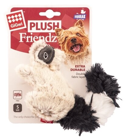 Игрушка для собак GiGwi / ГиГви Plush Friendz Енот с пищалкой текстильная, серый 16см / жевательная для активных игр