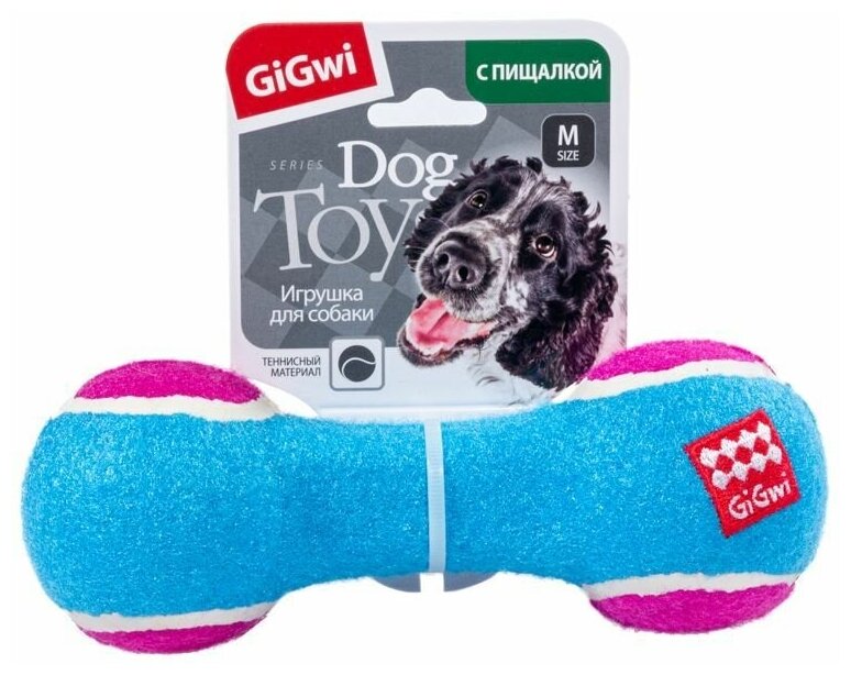 Игрушка GIGWI DOG TOYS Теннисная Гантеля с пищалкой, средняя