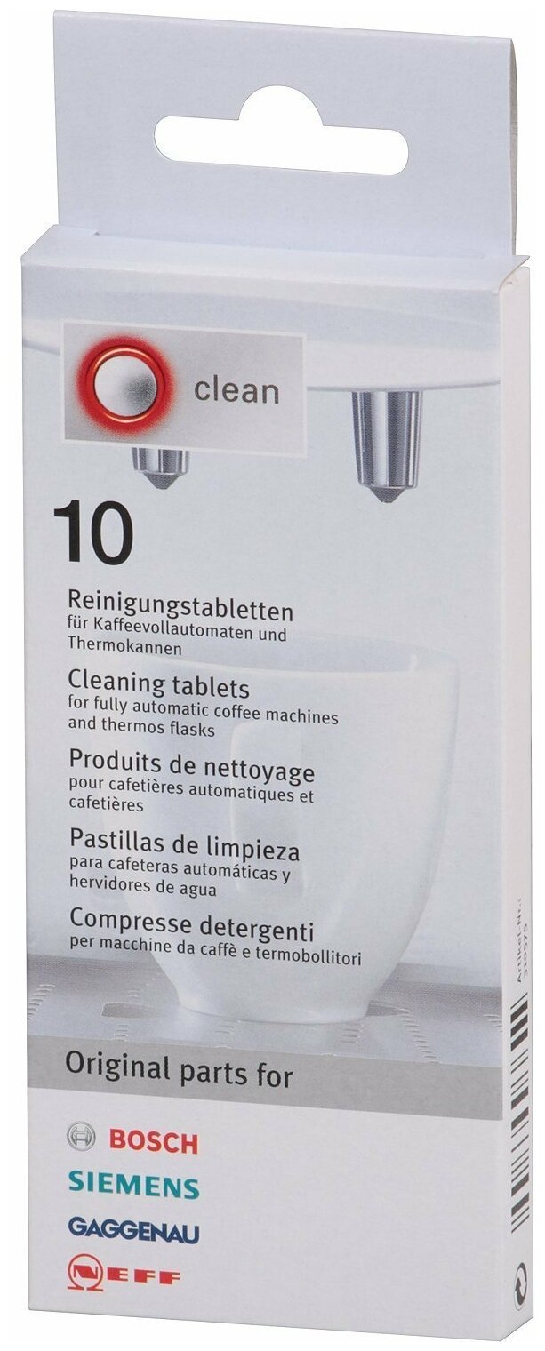 10 цен на Таблетки для чистки от эфирных масел для кофемашин и кофеварок Bosch, TCZ6001, 00311969, 311969 (10шт/упаковка)