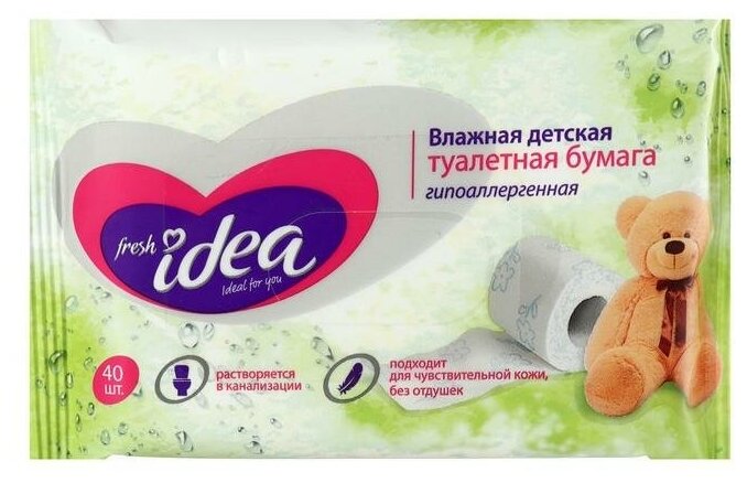 Влажная туалетная бумага Fresh idea детская, растворяющаяся, 13 x 18 см, 40 шт информация: