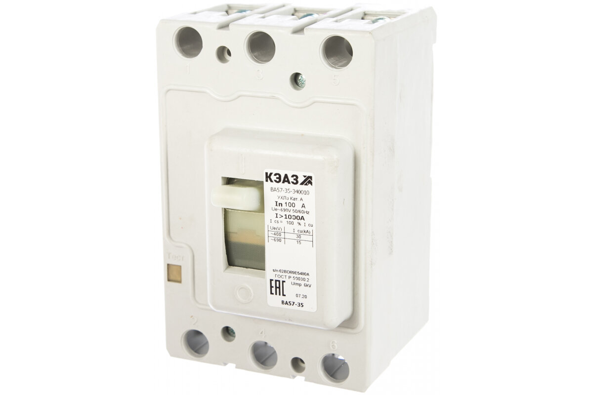 Отзывы на Выключатель автоматический 100А 1000Im ВА57-35-340010 УХЛ3 690В AC КЭАЗ 108566