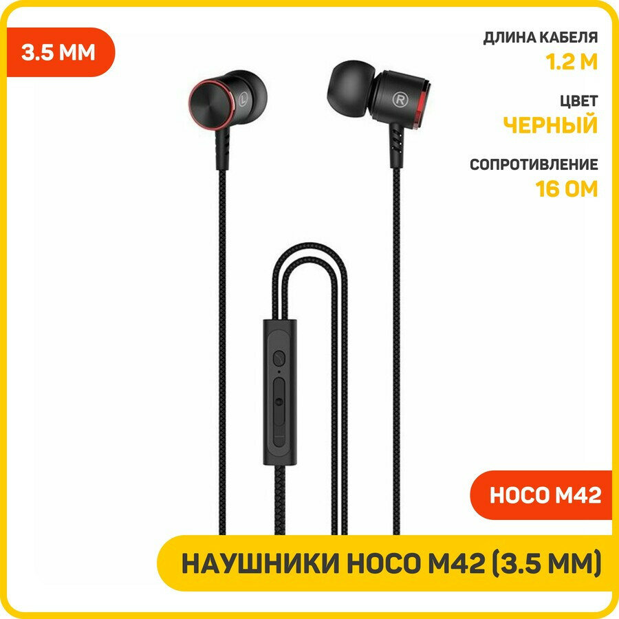 Наушники Hoco M42, проводные, вакуумные, микрофон, jack 3.5 mm, 1.2 м, черные