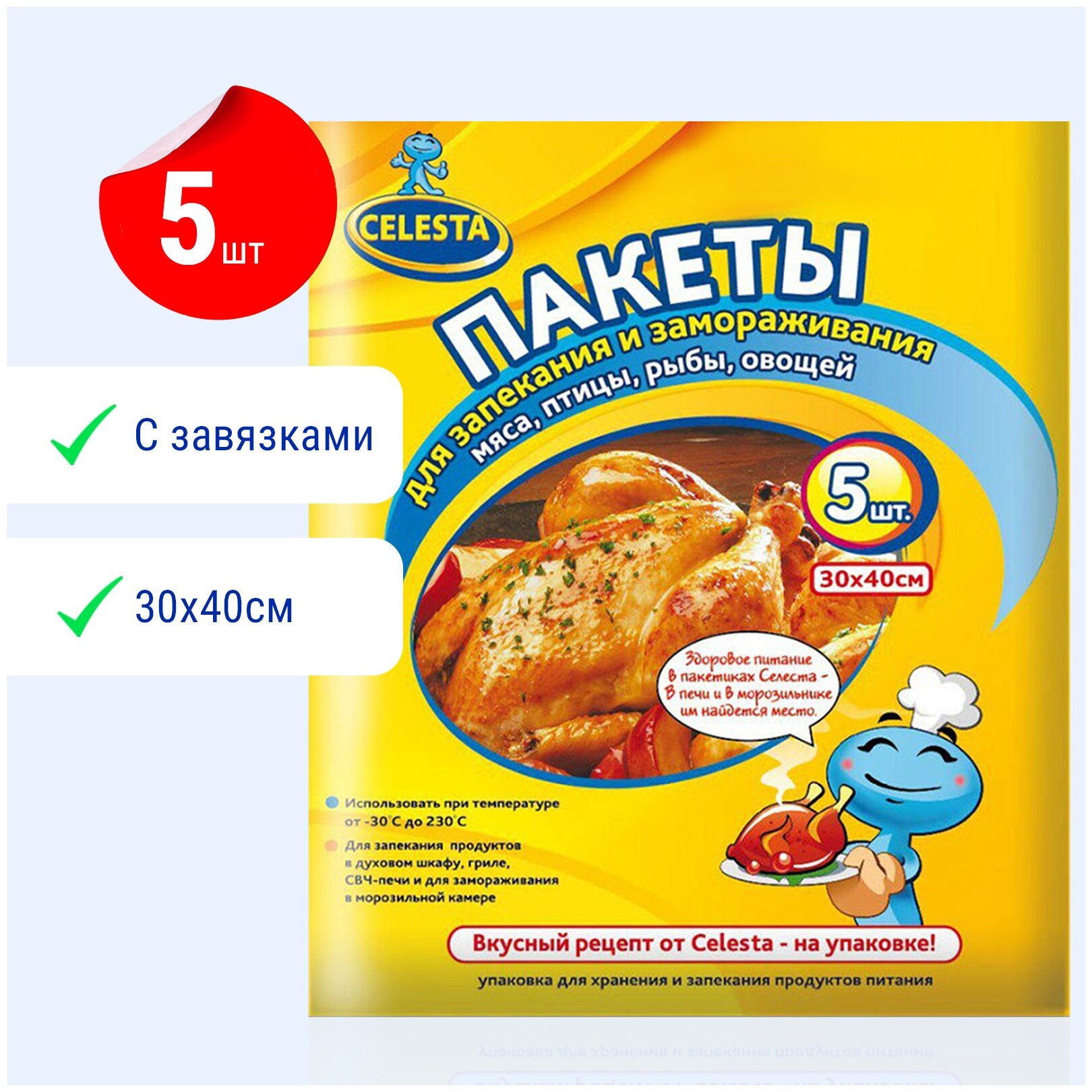 Пакеты для запекания и замораживания Celesta 12 мкм. 30 х 40 см. 5 шт./упак.
