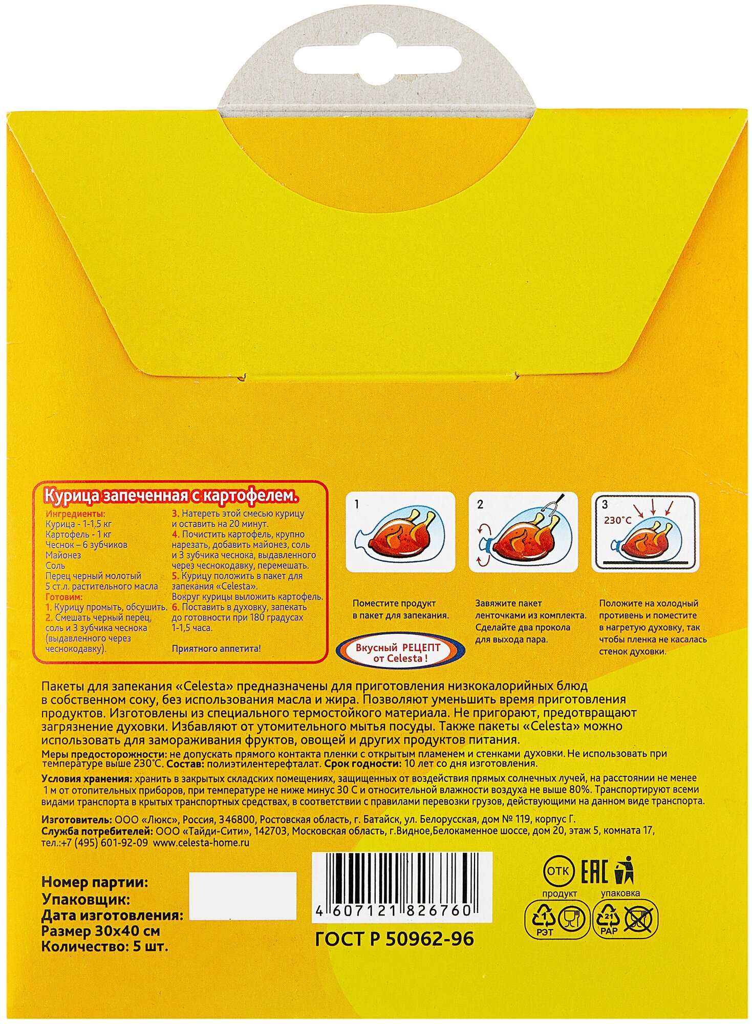 CELESTA Пакеты для запекания и замораживания 5шт информация:
