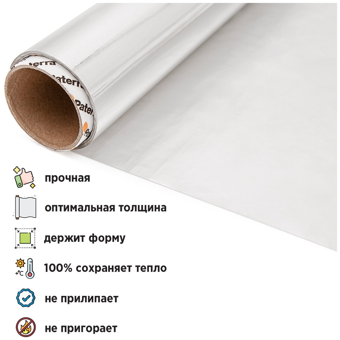 Пищевая фольга PATERRA прочная, 44 см, 10м, рулон в пленке 209-028