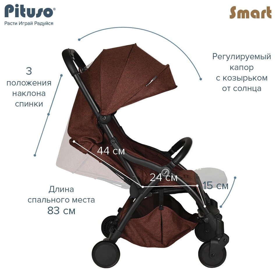 Отзывы на Детская коляска прогулочная Pituso Smart самоскладывающаяся Chocolate шоколадный лён