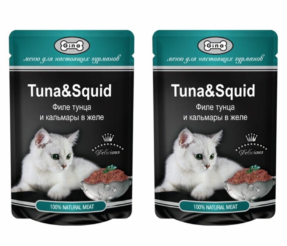 Gina Пауч для кошек Филе Тунца и Кальмары в желе, 85 г, 2 шт