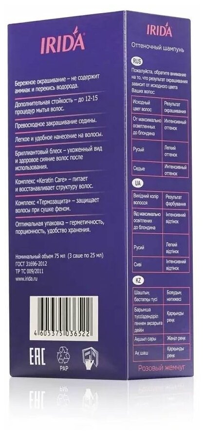 Оттеночный шампунь IRIDA розовый жемчуг (без фиолета) информация: