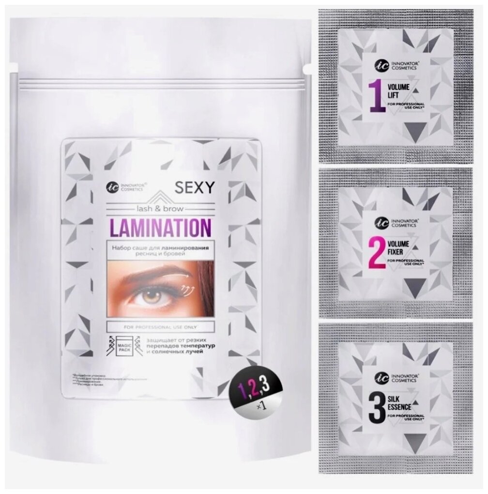 Innovator Cosmetics Набор составов в саше №1 Volume Lift+№2 Volume Fixer+№3 Silk Essence для ламинирования ресниц и бровей Sexy Lamination белый информация:
