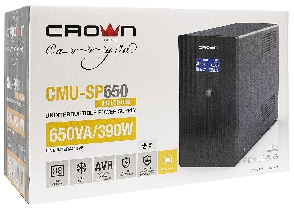 Интерактивный ИБП CROWN MICRO CMU-SP650 IEC LCD USB информация: