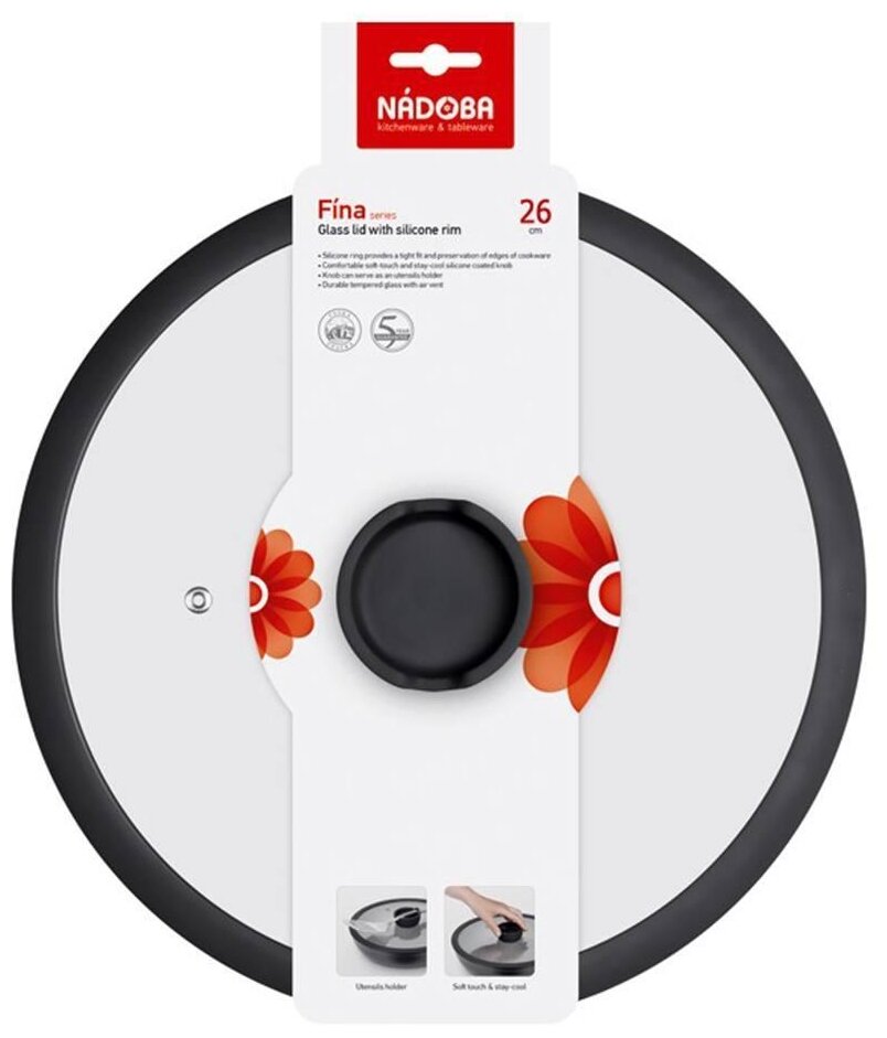 Стеклянная крышка NADOBA с силиконовым ободом, 26 см (751012) информация: