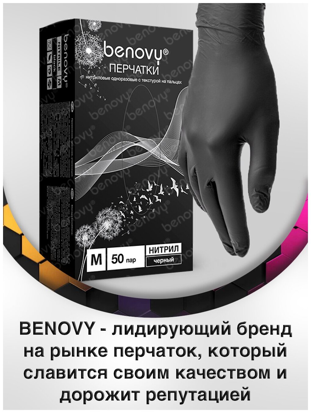 Перчатки смотровые Benovy нитриловые текстурированные на пальцах, Размер: M, Цвет: Черный
