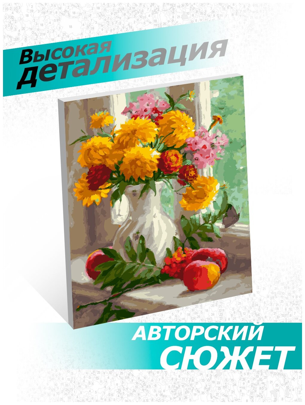 Картина по номерам Белоснежка "Малые золотые" / Раскраска / Холст на подрамнике 30х40 см. / Цветы / Букет в вазе / Натюрморт