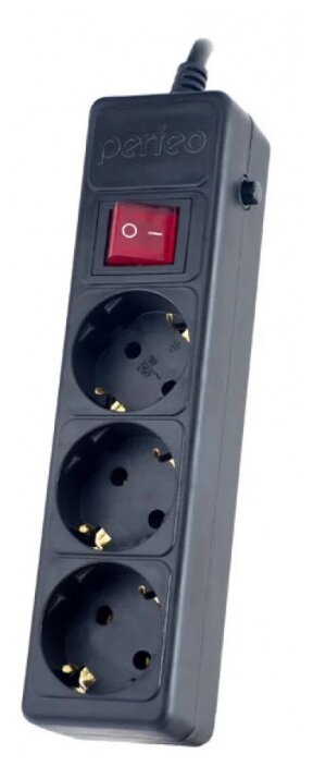 Сетевой фильтр с заземлением и кнопкой Perfeo Power+, 1,8 м, 3 розетки (черный)
