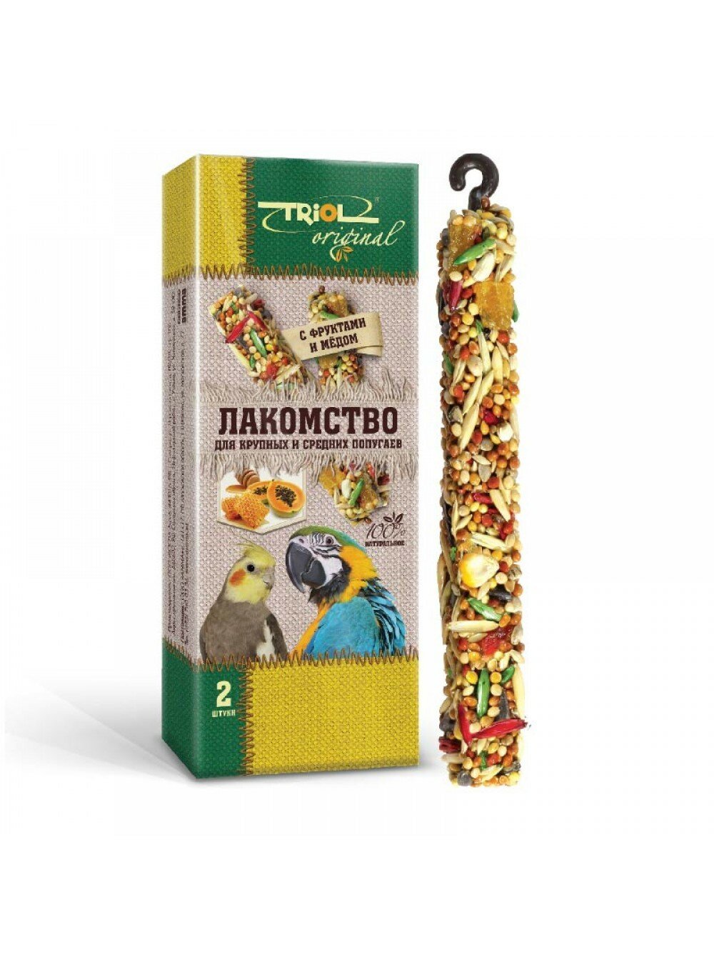 Лакомство Triol Original для крупных и средних попугаев с фруктами и мёдом (уп.2шт.), 55г