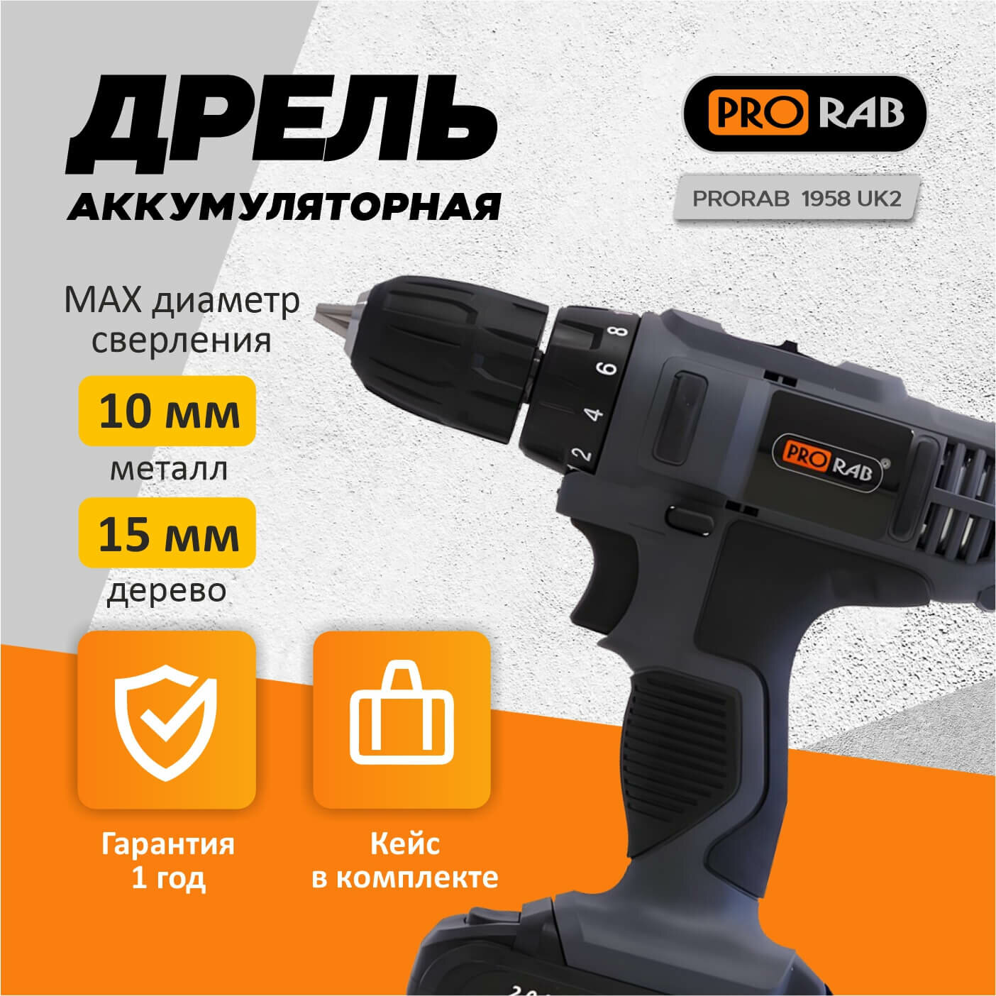 Дрель аккумуляторная PRORAB 1958 UK2 информация: