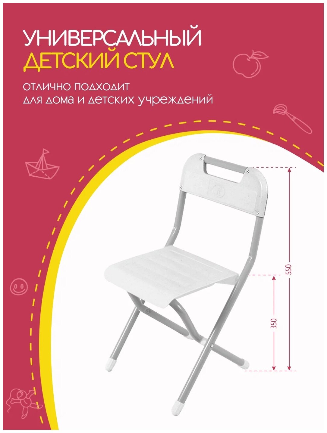Стул детский раскладной для детей от 1 до 6 лет, белый стульчик складной для дошкольников