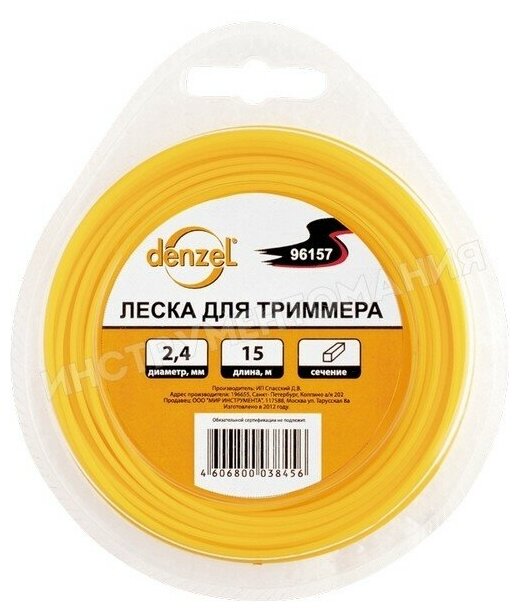 Леска для триммера квадратная, 2.4мм х 15м, блистер Россия// Denzel информация: