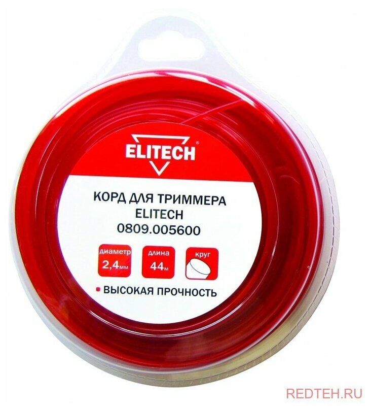 Леска для садовых триммеров Elitech 0809.002600, 2.4мм, 103м информация: