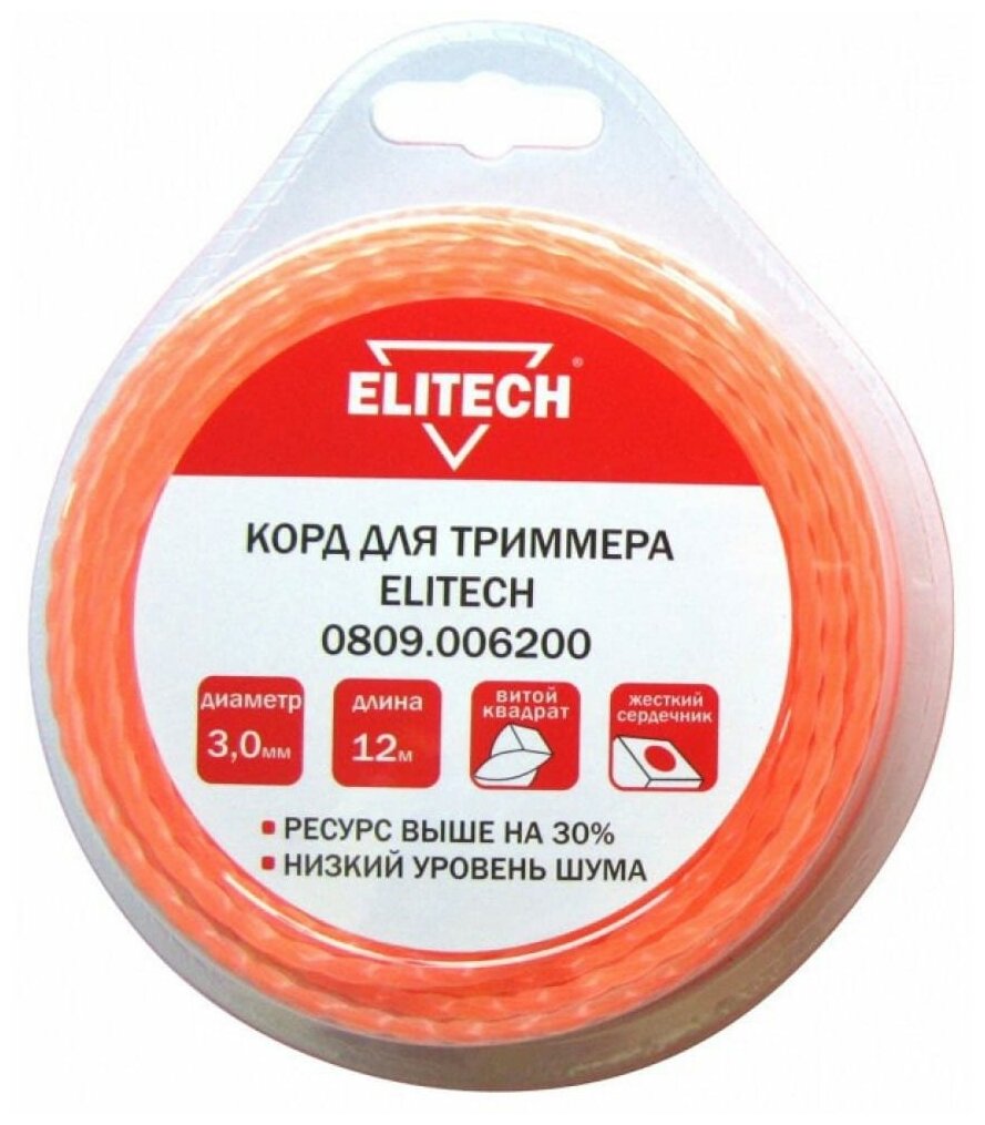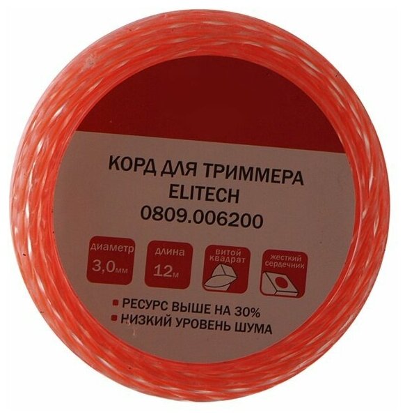 Леска для садовых триммеров Elitech 0809.006200, 3мм, 12м информация: