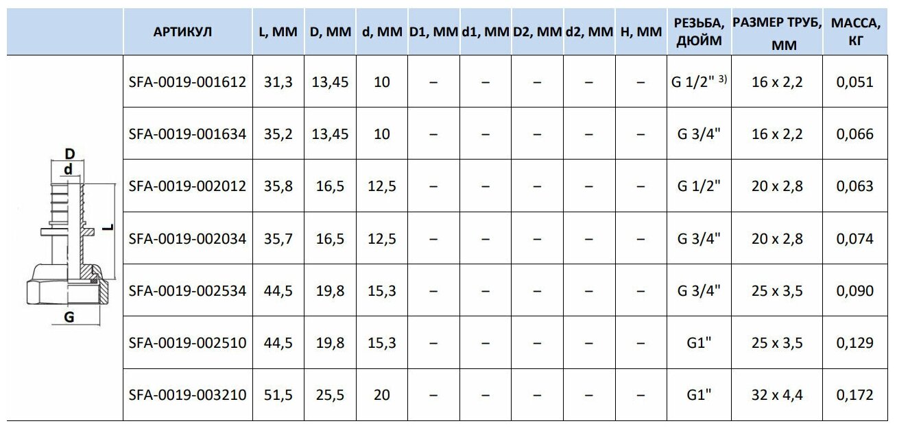 SFA-0019-002510 STOUT Переходник с накидной гайкой 25xG 1" для труб из сшитого полиэтилена аксиальный