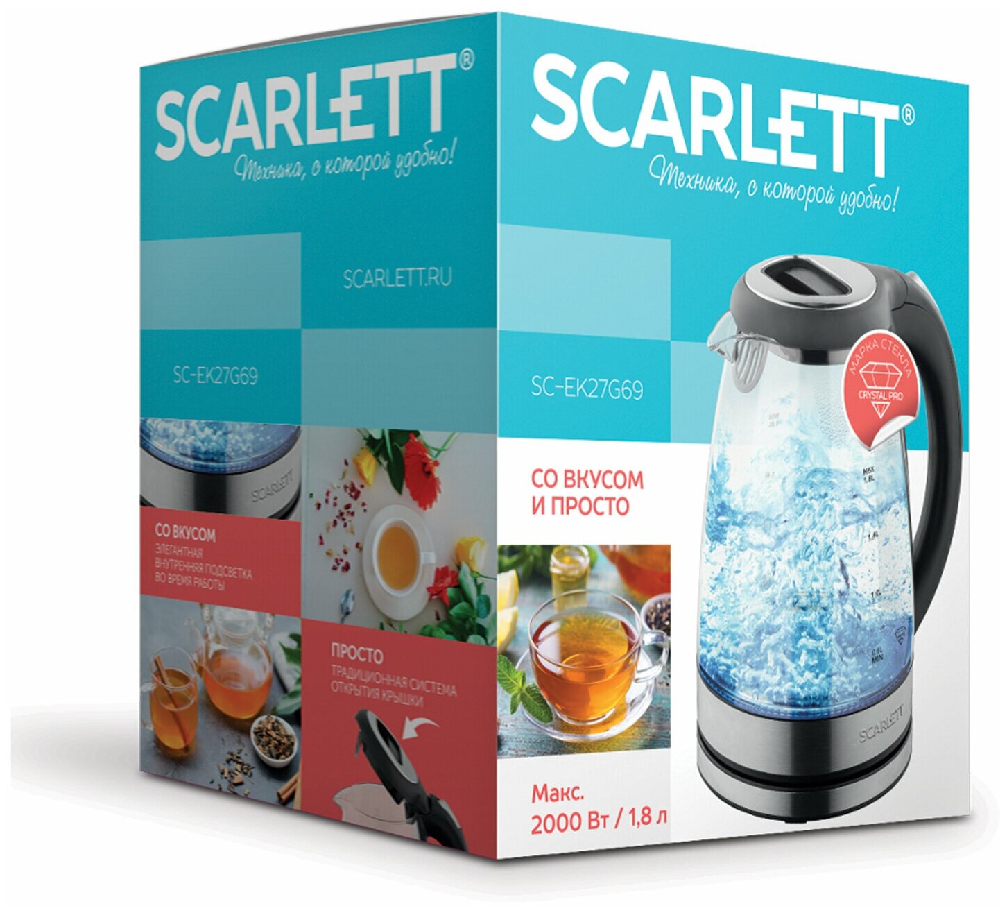 Чайник Scarlett SC-EK27G69, черный/серебристый информация: