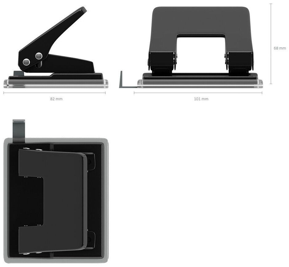 Дырокол Quadro, до 20 листов, диаметр прокола 6 мм, расстояние между проколами 80 мм, черный 814 ₽